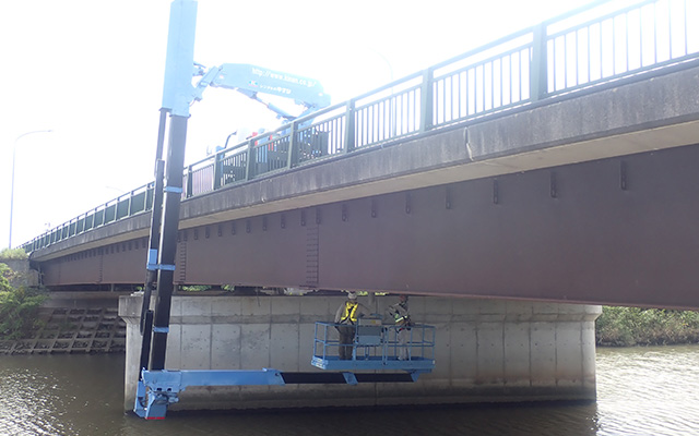 本事業は、橋梁点検や道路付属物調査、河川調査、砂防施設調査等、各種の公共事業関連調査業務や社会資本整備に伴う設計業務を行います。